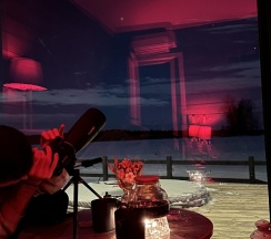 Особенно приятным сюрпризом оказался проектор и коллекция виниловых пластинок на выбор. Для любителей понаблюдать за звездами были предусмотрены бинокль и телескоп. Система умный дом позволяла настраивать освещение.