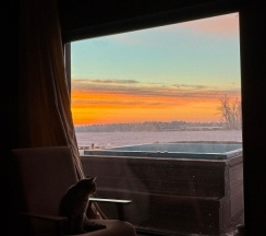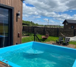 Провели 2 прекрасных дня в "36 градусов". Много плюсов - тепло (есть 2 обогревателя в спальне и в ванной комнате), есть полотенцесушитель, тапочки для бассейна, фен, щетки зубные, паста, шампунь и гель для душа, кофе, чай (заварочный для чайничка), сахар, халаты теплые, есть дрова для костра, есть вся необходимая посуда, решетка для мангала, в продаже есть уголь и розжиг, стол и скамейки на улице под навесом и мангал тоже, большая территория и много подсветки, 2 входа в домик это удобно (1 прям у джакузи и 1 у мангальной зоны), есть даже зонтики в домике и пледы для улицы, раскладушка кстати тоже для 3 человека вполне приличная, а не такая, какую мы представляем при слове "раскладушка"😂, лекарства мы брали свои, но увидела мельком, что есть неплохая аптечка с перекисью, зеленкой, бинтами, жгутом, антигистаминными, активированным углем, анальгином и ещё много других таблеток.Джакузи просто невероятное, с красивым видом на поле, разные режимы подсветки, только нам было некомфортно с пузырями, слишком уж брызги летят в лицо, использовали его больше как просто бассейн, вода комфортная ! (Если едете с ребенком, берите побольше шапок на замену, намокают, если ветер, то без шапочки холодно, для взрослых есть специальные банные шапки для такого случая). По поводу интернета увидела отзывы, могу сказать, что мы включали ребенку мультфильмы, всё ловило, возможно фильмы не грузятся. Соседей слышали один раз, когда они громко в джакузи смеялись, всё остальное время такая тишина, будто мы одни). Отзывчивые и доброжелательные администраторы, которые быстро отвечают и всегда на связи. В честь дня рождения подарили бутылочку шампанского. Парковка около административного домика, если вы приедете без мужской силы, то вам помогут донести пакеты. Есть незначительные неудобства,( которые я описала лично админстратору и которые можно исправить) по типу маленького холодильника, имейте ввиду (мы хранили шашлык, торт, на улице, благо погода позволяла). Очень хотим вернуться летом, не сомневаюсь, что красота ещё более невероятная). Очень жаль, что на небе не было звёзд обе ночи и мы не смогли насладиться телескопом! Спасибо всем причастным за такое местечко для перезагрузки, недалеко от города.