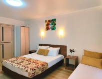 Неплохая гостиница, для тех, кто не избалован турецкими отелями, как мы)) Самое главное условие для нас было, чтобы пустили с собакой, без всяких ограничений по весу/росту - так как собака у нас не маленькая, порода акита-ину и вес 25кг. За собаку взяли доплату 1500р в сутки. Ей там понравилось, особенно лежать у стеклянной двери и смотреть во двор)) Мы жили в номерах двух типов: сначала в финском номере, потом в пятом корпусе напротив бассейна. В обоих номерах есть кондиционер (настраивается и на обогрев тоже), холодильник, чайник, возле номера терраска со столом и стульями и с сушилкой для белья. Влажная уборка производится каждый день, это несомненный плюс. Из минусов: очень плохая вентиляция в санузле, запахи не выветриваются и идут в номер; долго нужно ждать, пока нагреется вода (по крайней мере так было в финском номере); в пятом корпусе очень короткий провод у чайника и при этом розетка высоко; холодильники маленькие - они не морозят, только слегка охлаждают; мы брали тариф без питания, но были однажды на завтраке в столовой (за доплату) - ассортимент не сказать, что богатый, очень невкусный хлеб, остальное обычная домашняя еда, я спросила какие супы будут на обед - ответили, что суп будет один, видимо конец сезона (сентябрь) и народу не так много. В приемной почти всегда никого не бывает - если нужно отдать вещи в стирку, либо заселиться без предварительной брони или выселиться раньше - приходится искать администратора через других сотрудников или через чат в вотсап. Опять же, возможно из-за того, что сезон почти закончился. Бассейн большой, но без подогрева, вода там была ледяная, за день не успевала нагреться даже при том что было +27 днем. Хотя другие жильцы купались. Мы ходили на море - до него 5 минут пешком, песок хороший, чистый, без ракушки. Однажды утром приплывали дельфины) В целом - отдыхом довольны, но конечно на пять звезд пока не дотягивает гостиница)