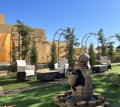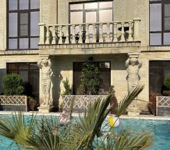 Уютная и ухоженная территория отеля, красивое оформление в греческом стиле. Разрешено размещение с животными. Приветливый персонал на ресепшене. Удобное расположение к паралии, но далековато от моря (с коляской и детьми будет сложно, учитывайте это). На территории отеля два бассейна, места хватало всем. Есть размещение на любой вкус и кошелек, но, говорят, что эконом корпусе все не очень хорошо.
