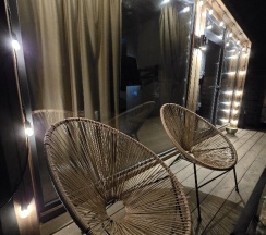Снимали шале. Очень комфортно. Есть большие столы, мягкие стулья. Мангал, всё для готовки на мангале. В шале небольшая кухня.