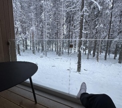 Отдыхали в период 23.02 - 25.02. Стильные номера с видом на лес. Хорошая шумоизоляция, соседей не было слышно. Много развлечений под крышей, если с погодой как и нам не повезёт. Каток, боулинг, настольный теннис, бильярд. Стоит учитывать, что завтраки и развлечения находятся не в шаговой доступности, ходит шаттл через каждые 40 минут. В 22:00 в шаттле почувствовали себя как в маршрутке в 9 утра, все хотели уехать, но мест не хватало.