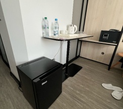 Приветливый персонал номер чистый в номере чайный столик холодильник тапочки полотенце освещение номера на высоте рекомендую все в шаговой доступности 👍