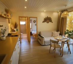 Добрый день. Отдыхали в доме Изумруд одну ночь с 22.08.2025. Просто шикарный дом, все продумано, все обустроено, чистота, бокалы блестят, посуда вся как новенькая, есть все для приготовления, посудомойка, фильтрованная вода. Внутри красота, у нас ребенок был в восторге от сетки-гамака, огонечков, от уюта в каждом уголке, провела пол вечера на втором этаже с прекрасным видом на закат. У нас был тариф с чаном. Прекрасно посидели в нем, погрелись, отдохнули. Территория тоже красивая, кролики - отдельный восторг. Отдельное спасибо хочется сказать мужчине, котрый нас встретил, все подробно рассказал, обьяснил. Чувствуется, что все сделано с душой и заботой. Обязательно сюда вернемся еще и будем советовать друзьям и знакомым.