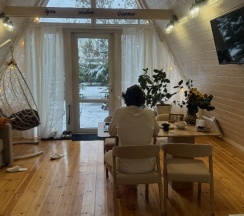 Ездили с семьей в Aframe Happy на каникулы, снимали дом “Изумруд”. Все понравилось, особенно детям. Гамак – это их любимое место, целыми днями там валялись! Мелочи продуманы: есть детская кроватка, игрушки, телик с мультиками. Ну и купель, конечно, - это очень классно! Понравилось, что прямо в купели можно воду разбавить, если сильно горячо. Прогулялись по округе, все рядом, удобно. Отдохнули отлично!