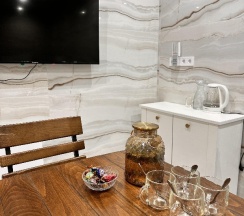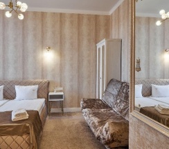 Очень доброжелательная администратор, может она и хозяйка, мы не интересовались. Номер двухкомнатный и большой балкон с мягким диваном и тëплым паласом. Ремонт современный, есть халаты, чайник и т д. Ванная огромная, есть даже стир. Машина👍. Нам очень понравилось, учитывая, что там тихо на первых этажах и вблизи нет ресторанов. В общем и целом за такой большой и красивый номер цена очень заманчивая. Все достопримечательности в шаговой доступности. Советую🙂 чуть не забыл есть уютная кухня, завтрак включён 👌 желательно заселяться до 19:00