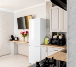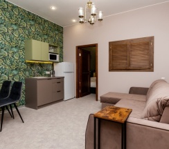 Чистота в номере идеальная , свежий современный ремонт, хорошее расположение отеля: рядом ресторанчики, бары, кафе, прогулочные зоны, парки. На территории жк есть детская площадка. В номере есть все необходимое (особенно порадовало наличие хорошего фена) Девушки на ресепшен - приветливы, очень доброжелательны, отзывчивы