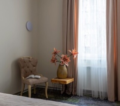 Отличный отель, удобное местоположение, рядом музей Янтаря, от острова Канта минут 20-25 пешком. Современный ремонт и мебель, все аккуратно, чисто. В номере есть холодильник, микроволновка, раковина, посуда. Единственный нюанс, лифта нет, нужно подниматься по лестнице с чемоданами, возможно для кого-то это будет не очень удобно. В качестве комплимента положили чай и мини пряники, налили по чашке кофе из кофемашины. Нам все понравилось, рекомендуем