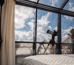 Очень уютное, приятное место) сделано всё с душой) Впечатлил продуманный интерьер стеклянного дома - такого ещё нигде не встречали) Классная фишка - обсерватория прямо в спальне))) Профессиональный телескоп и карта звездного неба 👌