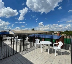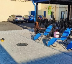 Были здесь в середине августа 5 дней. Гостиница- отель наверное одна из немногих в Соль- Илецке, которая действительно заслуживает похвалы. Встречает хозяин, очень приветливый человек. Сразу же показал короткие ролики про озера, пока оформлялись. Номер был на втором этаже без терассы с окнами на дорогу. Если будете выбирать, то советую на другую сторону во двор, там у каждого номера своя терраса или балкон, где можно посидеть на свежем воздухе, попить чайку. Номера свежие, чистые, светлые. В номере есть холодильник, кондиционер, чайник и свой туалет с душем. Нам не хватало столика, чтоб попить чай или перекусить. Постельное белье и кровать чистые, белоснежные. Во дворе есть навес со столиками и мангальная зона. Можно там готовить еду. Также есть каркасный бассейн, вода теплая, чистая, фильтруется. Бассейн большой, хватает купаться нескольким человек одновременно. На территории есть парковка для машин. Есть небольшой нюанс, это до озер идти минут 10, около километра. В жаркую погоду не совсем комфортно. Но кто любит пешие прогулки, тому нормально будет. Недалеко от гостиницы есть магазин Сфетофор и парк отдыха. Желаю дальнейшего развития.