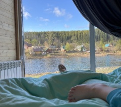 Вокруг тишина только речка «шумит», эти звуки просто переключают от будничных дел. Мы брали домик с окном на речку, было супер круто просыпаться с таким видом. Восхитительно!