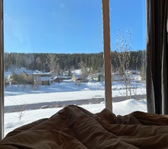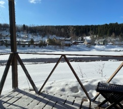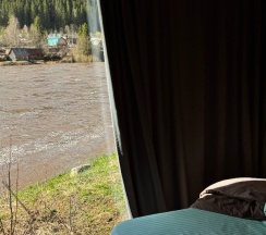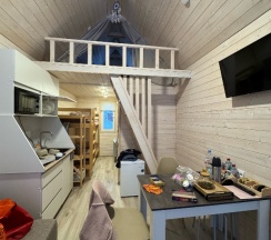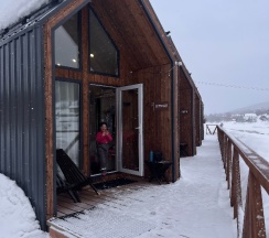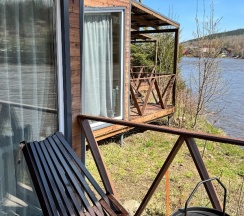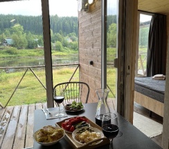 Понравился сервис. Администраторы вежливые, приветливые. Были всегда на связи, откликались на просьбы. Предложили постирать и посушить вещи, обувь. Вкусный завтрак с утра приготовили. Расположение классное, прямо на берегу реки. В домике чисто, уютно. Нам не хватило посуды, но админы дали ещё дополнительно. Одеяло было очень жаркое, было бы здорово предлагать разные. В сушилке обувь сушите аккуратно, она уменьшилась.