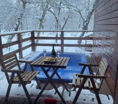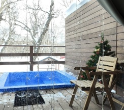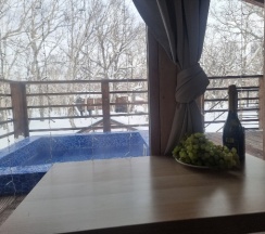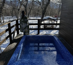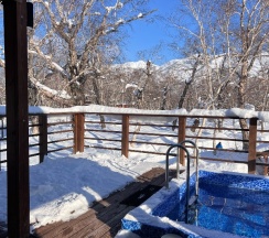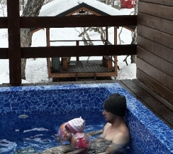 Прикольное местечко. Классно, что у всех домов свой бассейн с водой из термальных источников. В доме все есть, посуды достаточно. Ресторана на данной базе нет, поэтому вся еда с собой. Напротив в снежной долине есть ресторан, но иногда он закрыт на спецобслуживание, узнавайте заранее)