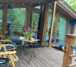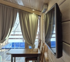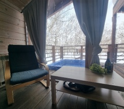 Отдыхали в улучшенном шале. Домик новый, все чисто. Практически все управление дома и даже подсветка бассейна при помощи Алисы. Порадовало, что разрешают посещать с домашними питомцами. Посуда и приборы новая, без сколов и затертостей. Куча подсветки и фонариков в доме. Отдельно отмечу расположение в прекрасном осеннем лесу, краски сейчас умопомрачительные. Из минусов отмечу что в домике была полчища мух, хорошо что приехали друзья и привезли липучку и они были пойманы 😜еще расстроило трещина на двери зеркале двери шкафа для вещей (плохая примета) 🥹 Из пожеланий - тапочки, микроволновка и халаты. Панорамным окнам в спальне отдельный респект 🫶 на будущее можно установить проектор в спальне.