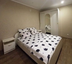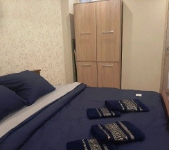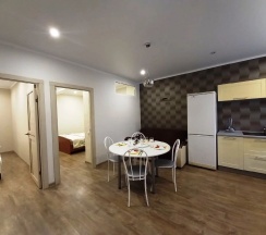 Две отдельные спальни с большими двуспальными кроватями, гостиная с раскладным диваном, совмещенная с кухней.