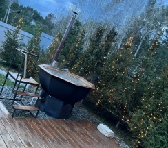 Отличное место для отдыха, территория ухоженная , купель чистая, сам домик продуман до мелочей, внутри домика есть все необходимое и даже миски/ пеленки для собачки