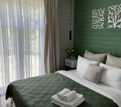 Отдыхали в зелёном барне семьей, просто отличное место! в доме чистота, есть всё необходимое, даже если ты просто проезжал мимо и решил пожить сутки, всё от зубных щёток до кофе машины на кухне! прекрасная ухоженная территория, а чан просто 🔥 Есть даже детские грушки, можно погонять мяч или поиграть в бадминтон. Отзывчивая и приятная хозяйка, поможет, всё расскажет и подскажет! Рекомендосьëн!