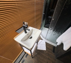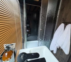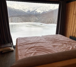 Безумно красивое место, отличный персонал. Вкусные завтраки. Все очень понравилось 🔝🔝🔝 Могу отметить, что в домике довольно тесно, но они и рассчитаны только на ночевки. И еще лучше бы наладить жалюзи в санузле, а то некоторые просвечивают. А также приятным изменением было бы, установка проектора над кроватью и экран выдвижной над окном. Так как вечером, на улице уже холодно, чтобы гулять, в домике интернет работает не стабильно, за окном темно и можно было бы скоротать вечер за просмотром фильма. Во всем остальном место восхитительное, девушки администраторы очень приветливые, во всем помогают, трансфер до подъемника всегда быстрый и удобный. Всем рекомендую от чистого сердца данное место для проживания 💯💯💯