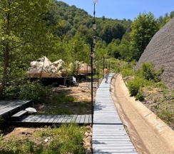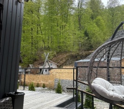 Уютные домики, с панорамным видом на горы , чисто, есть все необходимое (не хватило зубных щеток, зубной пасты и халатов)