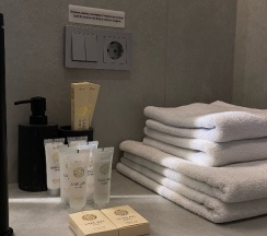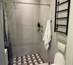 Чистый и современно оборудованный номер. Есть подогрев плитки пола в туалете и сушилка для одежды.