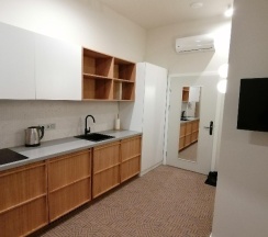 Номера чистые, есть все, что нужно для проживания: чайник, набор посуды, плита; фен, принадлежности для душа, тапочки и полотенца; телевизор.