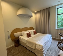 Добрый день! Праздновали свадьбу с 05.09 по 07.09 в этом замечательном отеле. Сказать, что мы были в восторге — ничего не сказать. Все началось со стойки регистрации при размещении в номер. Какие же там чуткие, улыбчивые и добрые администраторы🥹 Нас поселили в стандартный номер, но он выглядел как самый настоящий люкс. Номер был просторным, чистым и современным. Все удобства: от всевозможных средств гигиены вплоть до фумигатора с таблетками (он не пригодился, конечно, но как же было приятно, что позаботились). В день сборов ко мне заходили и мама с сестрой, и фотограф с визажистом, которых также радушно встречал администратор. По одному звонку можно было заказать еду из ресторана, который тоже заслуживает отдельного отзыва. В общем, ребята, спасибо вам огромное за такие теплые воспоминания. Мы сами из Питера и не ожидали такого высокого уровня от нашего родного Новгорода. Как говорится, это уже не Новгород, а Veliky Novgorod 😎. Обязательно приедем к вам еще, будем советовать всем-всем-всем. И желаем вам успехов, адекватных гостей и держать эту же планку 🙏🏼 Вы и правда топ ❤️