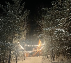 Рождественское оформление дома и придомовой территории порадовало своим стилем и душевностью. Видно, что хозяева вложили в это душу и фантазию. Вид из панорамного окна и с террасы завораживал: село, река и город вдали создавали атмосферу умиротворения. Думаем, в тёплое время года здесь будет ещё красивее!