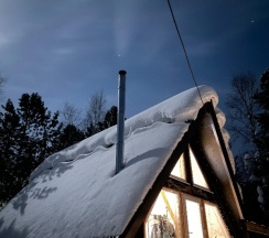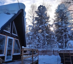 Это невероятно атмосферное место: вокруг кедровая тайга, тишина, прилетают сойки, скачут за окнами. В доме уютно, тепло, камин греет. А в банном чане можно любоваться на звёзды и заснеженный лес.