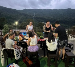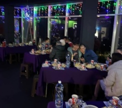 Праздник получился душевный и домашний: в итоге целый день были бани, чан, бассейн, всё время подавалась еда, а потом в 10 вечера было застолье — салаты, горячее, плов, шашлык, соки, компоты, Coca-Cola, бутерброды, сладости, фрукты — и всё это за 5000 рублей. Также пришли два Деда Мороза, две Снегурочки, и все раздавали подарки за стихи и песни. Подумайте сами: за 5000 рублей такое мероприятие нигде не найти — обычно в ресторане, а тут за такую сумму можно просто понюхать, а не поесть, толком не попить. А тут входила баня и всё остальное.