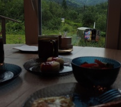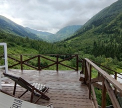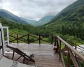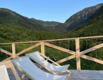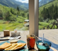 Отличный глэмпинг в горах со всеми удобствами (кухня, мангал, теплые туалет). Вкусный и сытный завтрак включен в стоимость. Кафе с "не кусающимися" ценами.