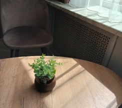 Гостиница на втором этаже в доме на тихой улице за цирком, в соседнем доме продукты, чуть подальше ларёк с молочкой и свежим хлебом. Номер достаточно просторный. Для меня было важно: огромные окна (вид на улицу, но достаточно приятный), отличный письменный стол (удобно и есть, и работать), кондиционер, двухместная кованая кровать (широкая, матрас удобный для любой позы, он просто не чувствуется), целых два шкафа, душ не кабина (которая обычно маленькая), можно поместиться :) много удобных мелочей: крючки в шкафу, ложка для обуви, фен, запас бумаги, просто куча розеток, причем удобно расположенных - и у окон, и у кровати, много крючков в ванной, коврик для ног у душа. Три полки в холодильнике. Санузел небольшой, но удобный (только рулон бумаги снимала и ставила на раковину , мешался). Очень внимательный хозяин, обеспечил даже чтобы конденсат чужого кондиционера не капал на подоконник в номере. Всё очень чисто. Внутри всё, как на фото. Жила несколько дней, очень довольна!