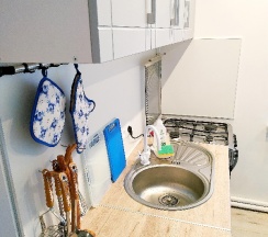 Тихий район, уличная парковка, большая спальня с большой кроватью на двоих, туалет, душ, кондёр, кухня, холодильник, микроволновка, в прихожей диван, при необходимости можно расположиться ещё двоим.