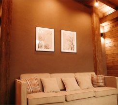 Дом имеет планировку студии и рассчитан на 4 спальных места. Интерьер студии максимально приближен к окружающей природе: вся мебель и предметы сделаны из дерева и экологичных материалов.