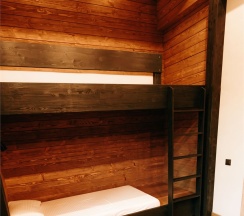 В центре дома просторная гостиная с креслами, двуспальной кроватью с удобными матрацами, Smart TV. Особый уют придает биокамин. Для размещения детей до 2 лет мы предлагаем воспользоваться детской кроваткой (по запросу). В доме работает Wi-Fi.