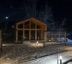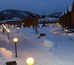 Был там недавно, место хорошее. Всё очень уютно. Снаружи есть лобное место, можно выгонять друзей из домика. Мангальная зона, шашлыки там готовили, что надо. Очень красивые дорожи с прекрасным освещением, ночью очень атмосферно. Домики красивые и чистые с большими окнами. Из минусов дорога рядом, когда на улице стояли слышно было проезжающие мимо машины, но это не критично. Плюсов валом минусов не валом. Советую к посещению данное место и ставлю свой знак одобрения!
