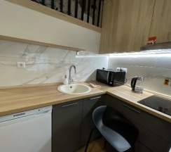 Понравилось в этом отеле: тепло, уютно, чисто!!!, белоснежные полотенца и белье, все есть для комфорта, администраторы быстро реагируют и решают вопросы, удобное расположение, всю необходимую косметику предоставляют, набор посуды и приборов на 4 персоны.