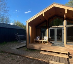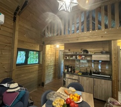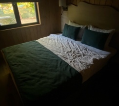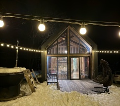 Отличное место, просто супер!!!! Красивые современные домики, хорошая мебель, качественная посуда, есть все от стопки до сковородки, постель чистая хорошего качества , удобный матрац и подушки. Все очень чистое , для нас это большой плюс . Персонал отличный на связи 24*7. Тихое место , природа прекрасная , проснулись от пения птиц, воздух обалденный. Нам всё очень понравилось . Желаем вам процветания !!! Ждем баньку, бассейн и кафе)))
