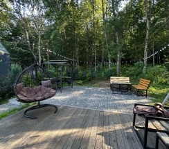 Отличное место. Были уже не один раз. Понравилось расположение - вокруг лес и тишина. Дом, оснащение дома, территория вокруг - все продумано и сделано для комфортного отдыха. Брали продукты с собой, есть вся посуда для готовки. Хорошая мангальная зона. Хозяйка Анна всегда приветлива, отзывчива., всегда на связи по любым вопросам. Лучшее сочетание цены и качества.