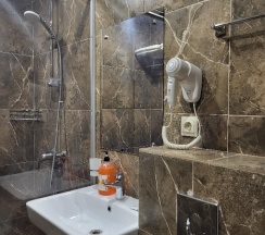 Были проездом, все очень понравилось . Фото соответствует, в ванной комнате имеется шампунь, гель для душа, мыло, полотенце. В общей комнате кулер с холодной и горячей водой. Кухня где можно разогреть еду и воспользоваться посудой. Сауна и тренажерный зал бесплатно. Рядом, у входа в гостиницу можно оставить машину.