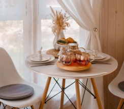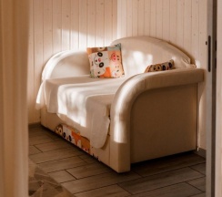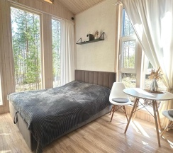 На территории расположились 2 небольших, уютных домика для спокойного семейного отдыха или уединенного романтического провождения. В домах предусмотрено все для комфортного пребывания, а именно: постельное белье и полотенца, пледы и тапочки для взрослых, фен, шампунь, гель, мыло, зубные щетки, мицелярная вода, туалетная бумага, аптечка, WiFi, TV, проектор, электро камин, электрокарниз с раздвижными шторами, зарядные устройства для телефонов, книги, настольные игры, карты, пазлы, стол+4 стула, Mini холодильник, микроволновая печь, чайник, тостер, электрогриль, эл/плита, сковорода, кастрюли, 4 комплекта стеклянной посуды, чай, кофе, сахар, приправы, соусы, зона барбекю, имеются шампура, собственная терраса с двумя качелями-креслами. Детям: игрушки, игры, раскраски, лото, карты, пазлы, детские полотенца/халаты, к-кт детской посуды для самых маленьких.