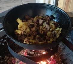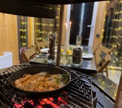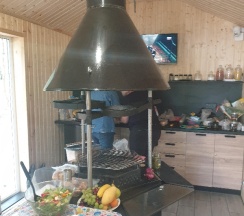Его необычность в том, что внутри домика рacполoжился дровяной grill мангал, на котором можно приготовить блюда на огне!