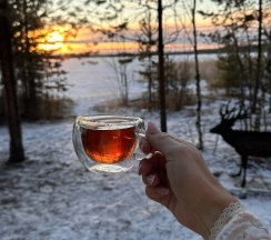 И это к лучшему, я получила неимоверное спокойствие души, просто попивая вкусный ягодный чай с брускеттами, любуясь открывающимся видом на озеро…с моросящим дождиком…