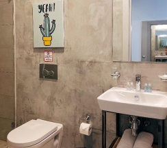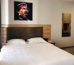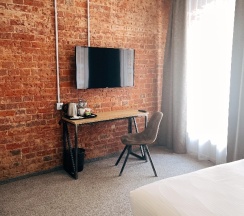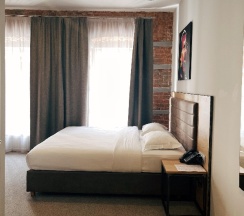В самом отеле чисто, красиво, стиль лофт с крутыми картинами. Номер с двумя окнами стандарт просто огонь! Наборы полотенец, халаты, гигиенические средства, чай, чайник. Все чистенько. Кровать удобная, чистая приятная постель, подушки комфортные. Не смотря на то что окна на дорогу не шумно. Вода горячая, правда напор душа слабенький голову помыть, но это мелочь. Даже после выселения разрешили оставить тяжёлый груз в комнате хранения, бесплатно! В следующий раз, как полечу в командировку однозначно сначала приеду сюда если будут свободные номера! Успехов вам!