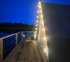 Администратор вообще супер) помог чем смог, сразу чувствуешь что тебе тут рады) шикарное озеро, хорошее наполнение глемпинга. Личные Туалеты с ванной тоже порадовали.