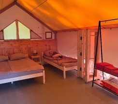 Очень тихо,красиво,никто не тревожит,в палатке(доме)всё есть необходимое,чисто!!!
