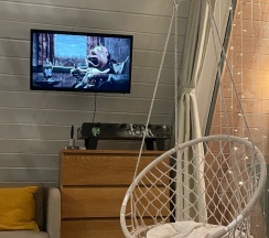 В домиках чисто, уютно. Есть тв с интернетом, можно смотреть фильмы. Персонал заботливый и отзывчивый.