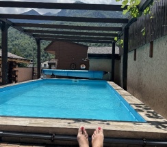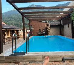 Кайфовый бассейн с видом на горы! Жаль банька только на индивидуальное бронирование🩷!