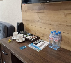 Администратор Татьяна очень хорошая девушка, всегда готова помочь . Вопросов вообще нет. Жили в делюксе с видом на горы. Номер просторный и чистый. Вода, чай, кофе, чайник, кружки - всё есть.