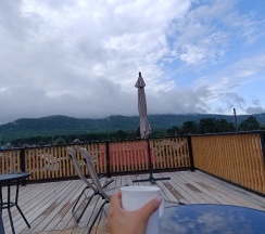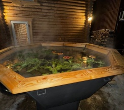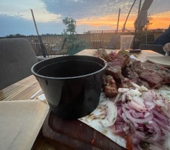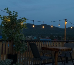 Отличная терраса и шеф повар Василий! Истинный профессионал своего дела, готовит так, что пальчики оближешь. Человек действительно умеет готовить! Рекомендую! Массаж делает тайка) и чан очень хорош, температура комфортная! Вообщем всё понравилось)