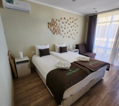 Очень хороший отель, отзывчивый персонал. В комнатах всё на высшем уровне. Чисто, аккуратно, белоснежное постельное белье и полотенца. В спальне и ванной тёплые полы, что очень было кстати в дождливую погоду. И конечно же бассейн, ребёнок остался доволен, не смотря на то, что большую часть отдыха были дожди. В общем рекомендую)